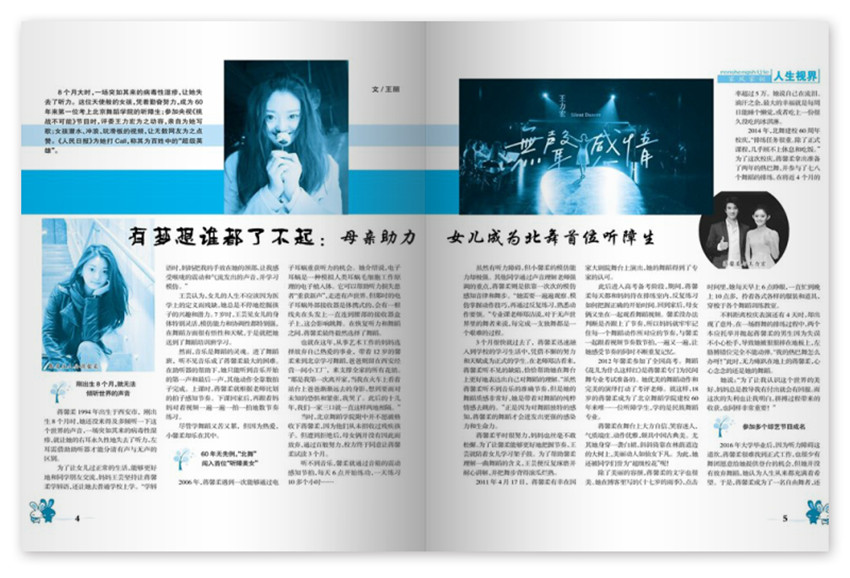 有梦想谁都了不起:母亲助力 女儿成为北舞首位听障生,刚出生8个月,就无法倾听世界的声音,蒋馨柔1994年出生于西安市,刚出生8个月时,她还没来得及多倾听一下这个世界的声音,一场突如其来的病毒性湿疹,就让她的右耳长期性地失去了听力,左耳需借助助听器才能分清有声与无声的区别。为了让女儿过正常的生活,能够更好地和同学朋友交流,妈妈王芸坚持让蒋馨柔学唇语,还让她去普通学校上学。