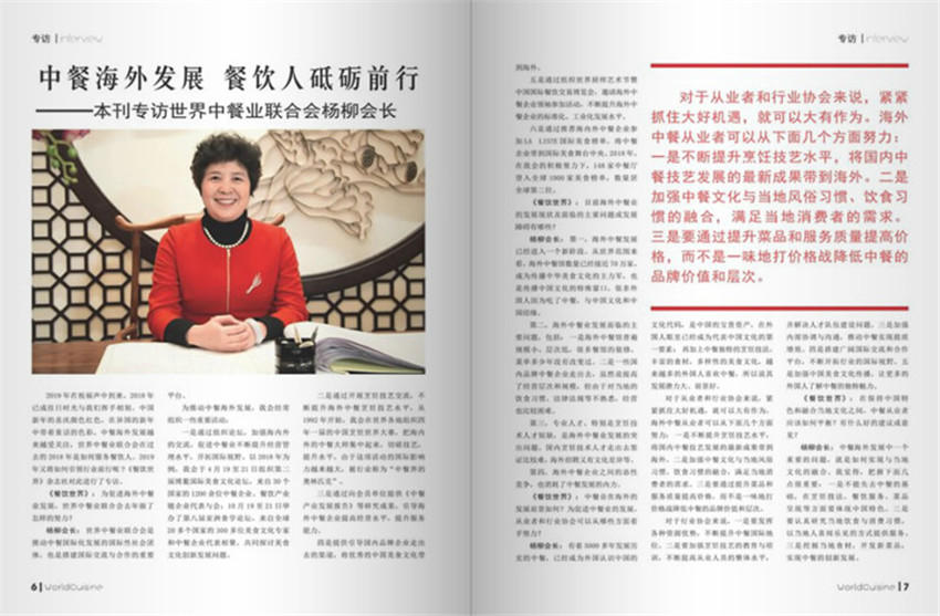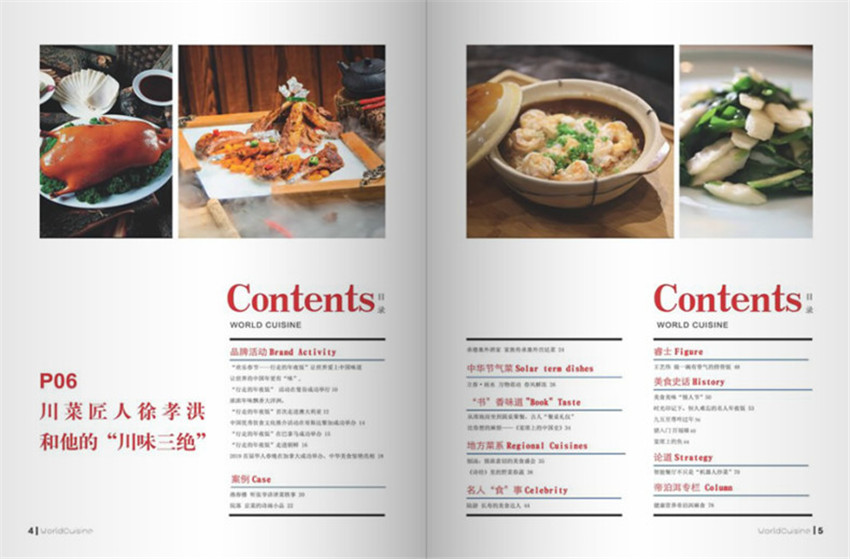 《餐饮世界》主要栏目:焦点、餐馆精英、饮食文化、技艺经典、饮食养生、五洲传真、名题名店、经营真言。