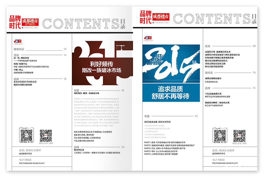 《成都楼市》杂志秉承客观、公正、专业的服务原则,结合成都市房地产交易中心交易数据分析,为购房者提供近期的楼市行情报道。并以多方位的楼盘检索、全景式购房地图、客观专业的楼盘点评和超大篇幅的楼盘个案信息帮助购房者轻松完成购房初选。