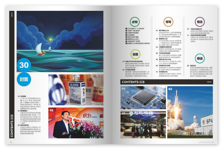 《财经天下》主要栏目:两周内你必知的15个商业事件、Outliers、Details、Opinion、封面故事、特写等。