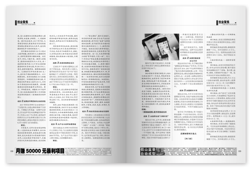 紧密围绕中小投资创业者的需求,提供投资致富的道路和道理,每期都有对小投资难点热点问题及时的研究与报道,并提供大量具投资价值的商机信息,是小投资创业者走向财富之路的可读刊物,也是了解和考察中国小投资创业现状和走势的可读刊物,全国及时家帮助和指导中小投资创业者投资赚钱的普及性财经杂志。