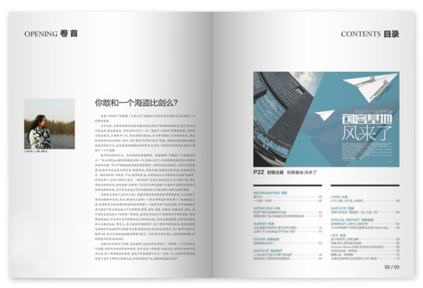 以地产为切入口,影响地产界及关注地产界的财富人群。主要反映地产界的人物、事件和财富生活,深切关注企业的生命力和可鉴意义,关注财富阶层的独特思想和价值观念,是房地产发展商和城市精英阶层的读品。