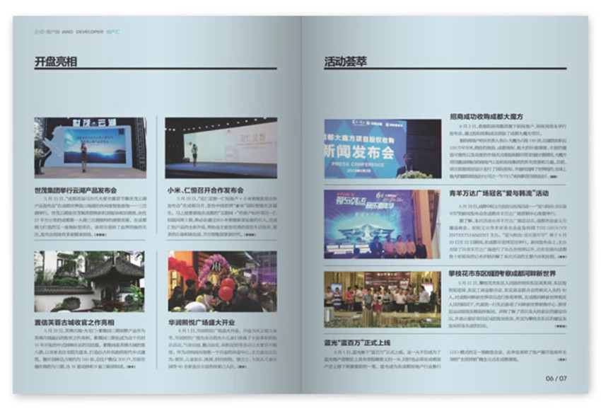 《公司·地产商》主要栏目:封面主题、职场、区域调查、企业、现场观察,等。