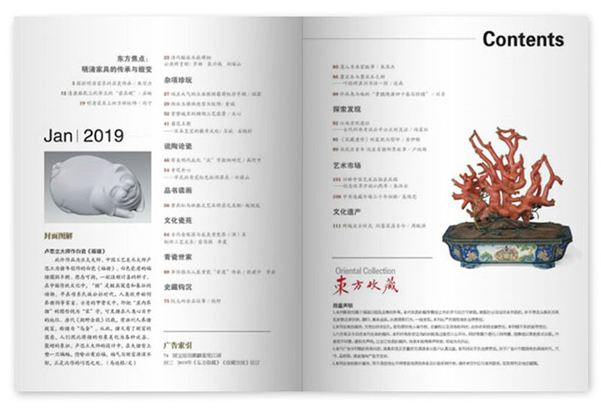 《东方收藏》主要栏目:说陶论瓷、焦点透视、探索发现、杂项珍玩、博物之窗等。