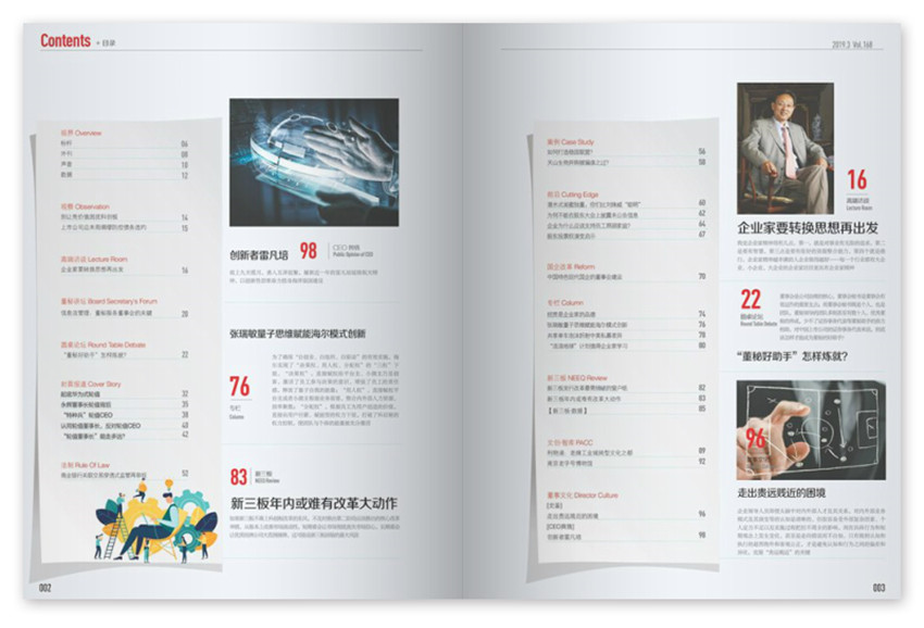 《董事会》主要栏目:调查、董事圈、资讯、董事圆桌、收购•兼并等。