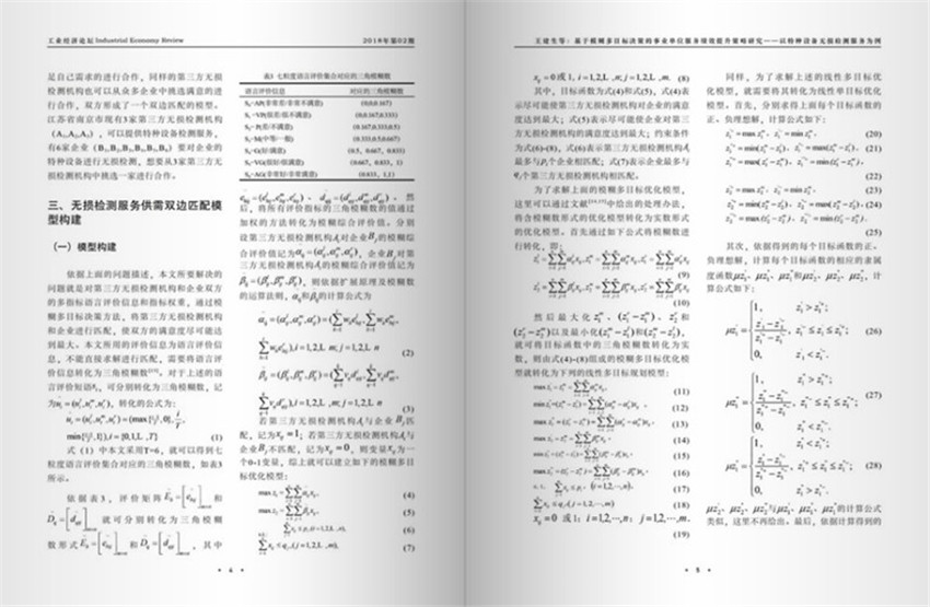 为实现服务绩效的提升,通过研究企业和第三方无损检测机构之间特种设备无损检测服务的供需匹配问题,提出了一种模糊多目标决策方法:首先,构建企业与第三方无损服务机构的评价指标;其次,对无损检测服务供需问题进行描述;后,根据模糊多目标决策方法进行求解,将语言评价信息转化为三角模糊数,终计算得到匹配结果。