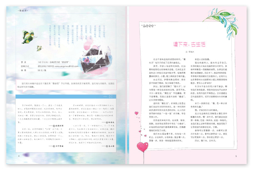《感悟》,单期页数:80页左右,本刊创刊于:2005年,其纸张开本为:16开,本刊重在突出理论性和探索性,对促进文学文摘交流及发展,起着重要的指导作用。纯爱的瞬间、初恋的体悟、微妙的情愫、难舍的情缘,要求故事感人而新颖,通过细节表现爱的真谛,让读者珍惜或者找回爱情世界里被自己忽略的东西。
