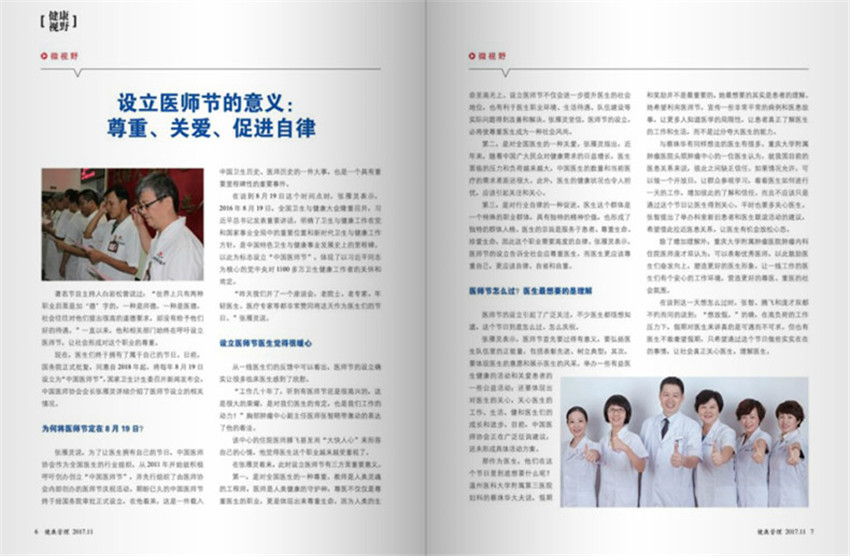设立医师节的意义:尊重、关爱、促进自律。著名节目主持人白岩松曾说过:“世界上只有两种职业后面是加‘德’字的,一种是师德,一种是医德,社会往往对他们提出很高的道德要求,却没有给予他们好的待遇。”一直以来,他和相关部门始终在呼吁设立医师节,让社会形成对这个职业的尊重。现在,医生们终于拥有了属于自己的节日。日前,国务院正式批复,同意自2018年起,将每年8月19日设立为“中国医师节”,国家卫生计生委召开新闻会,中国医师协会会长张雁灵详细介绍了医师节设立的相关情况。