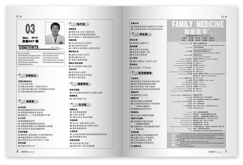 《家庭医学》是中华人民共和国国家卫生和计划生育委员会主管,中华预防医学会主办的大型家庭健康实用期刊,集权威性、实用性、收藏性、娱乐性于一体,图文并茂,知识丰富。是家庭的健康保障,生活保健的向导,医疗咨询的指南,心理、生理健康的源泉。