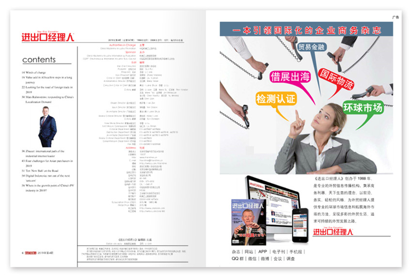 精彩的内容、专业的观点、精美的图片、高品位的审美情趣,随着读者的物质生活水准迅速提升,人们越来越注重精神层面的追求与生活品质的提升,《进出口经理人》顺应时代潮流的一个全方位整合出击。集趣味性、思想性和知识性于一体,是一本越来越有看点的杂志、一本越做越精彩的杂志、一本越来越受欢迎的杂志,在全国范围内具有较高的知名度和广泛的社会影响。