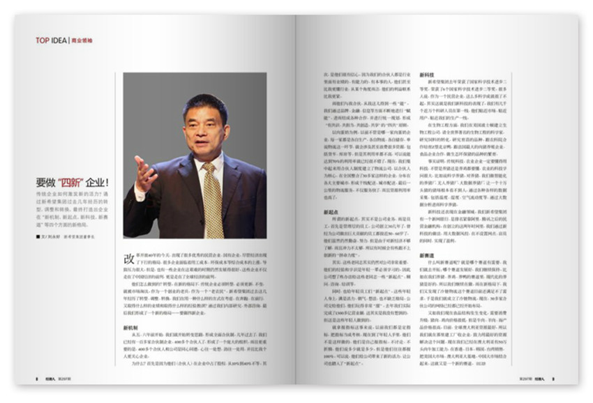 要做“四新”企业,传统企业如何激发新的活力?通过新希望集团过去几年经历的转型、调整和转换,终打造出企业在“新机制、新起点、新科技、新赛道”等四个方面的新格局。集趣味性、思想性和知识性于一体,是一本越来越有看点的杂志、一本越做越精彩的杂志、一本越来越受欢迎的杂志,在全国范围内具有较高的知名度和广泛的社会影响。