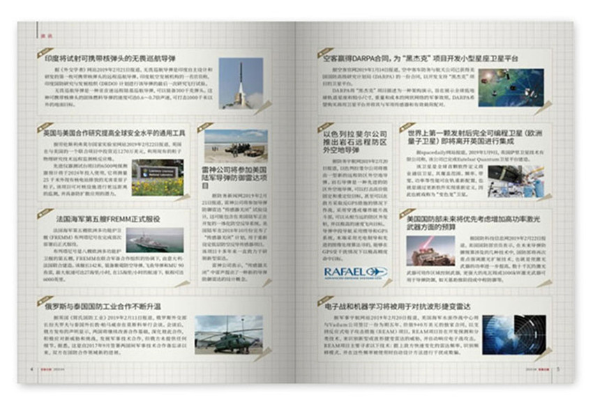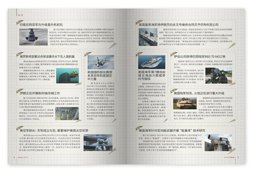 《军事文摘》主要栏目:武器装备、军情关注、中国军情、史海钩沉等。
