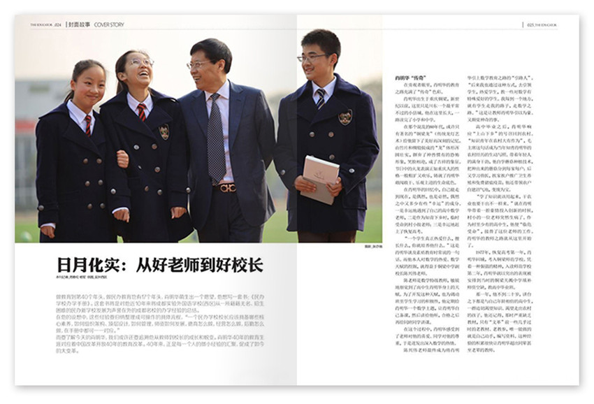 《时代人物·新教育家》杂志(原名《时代教育·教育家》)不太会是一个干精火旺的东西,而是一个跟等待、耐心、谅解和时间有关的东西。它是缓慢的。我们缓慢地讲述,以便你们缓慢地阅读,教育是世界上最动人的行为。