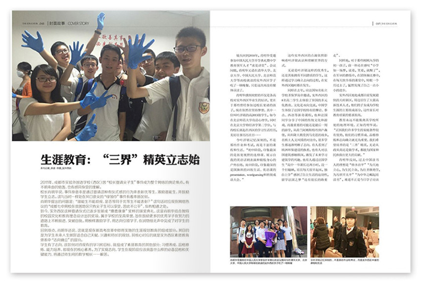生涯教育:“三界”精英立志始,2011年,成都市实验外国语学校(西区)因“校长宴请尖子生”事件成为整个网络的舆论焦点。教育是世界上最动人的行为。我们没有能力告诉你应该怎么做,不过我们也许可以告诉你在这个最动人的领域里我们看见了什么,什么在进行,什么在争论,什么在被思考和尝试,最重要的是,谁在脚踏实地地做,做什么,怎样做,谁在爱孩子疼未来,谁在呼告和奔走。