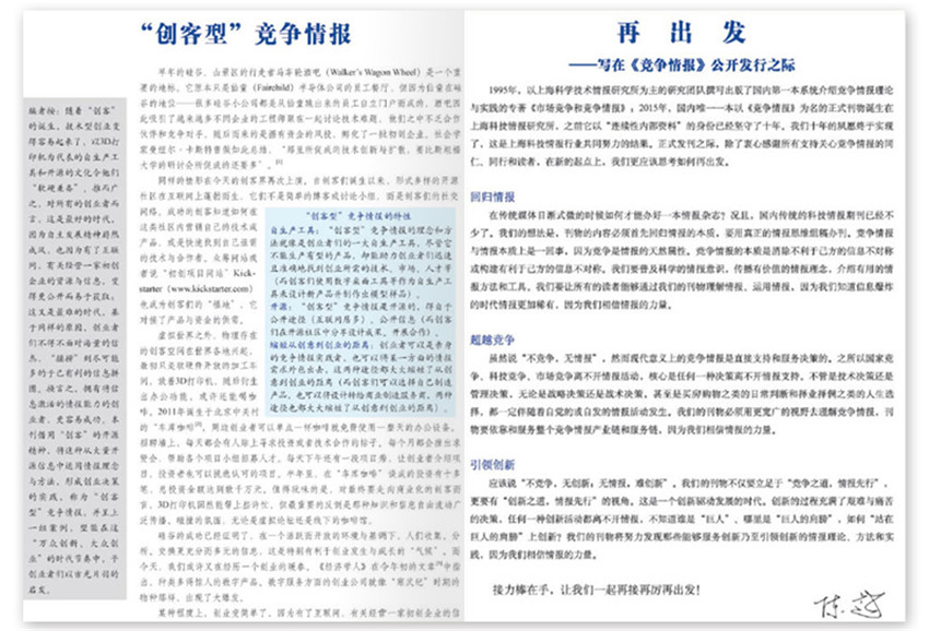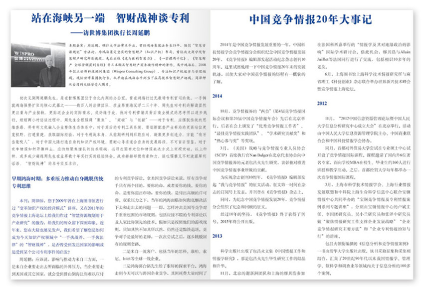 《竞争情报》主要栏目:新刊贺词集锦、特写、情报行业纵观、CI人协访谈、CI在海外、CI企业应用、CI随笔、MIRU视点、各刊题录汇总、通知。