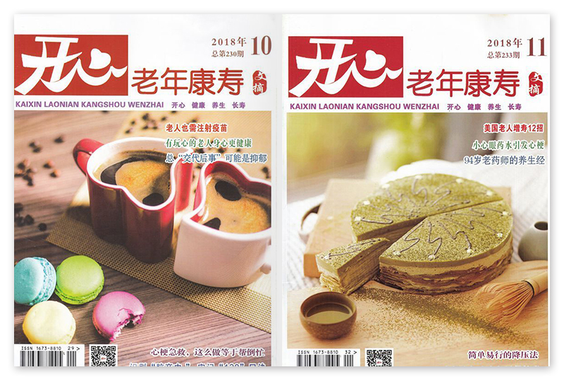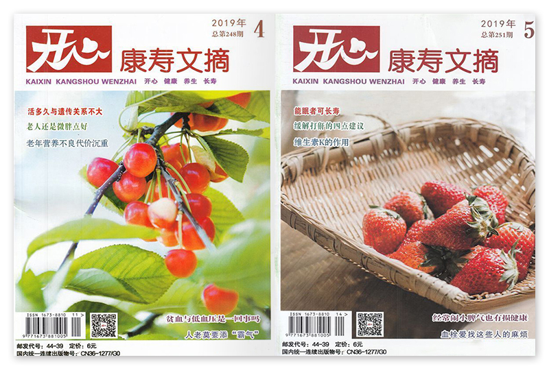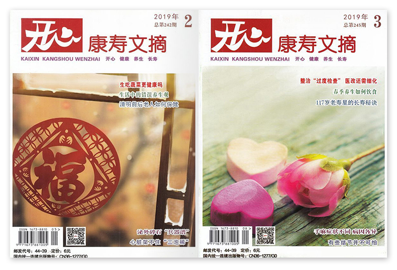 《开心·康寿文摘》杂志,(月刊),是面向全国发行的健康养生类期刊,杂志拥有独到的思维与敏锐的眼光,使得杂志成为众多国际大品牌客户重视的核心媒体之一。广集古今中外有益于健康长寿的卫生知识、自我保健常识,进行卫生科普的传播,帮助广大读者掌握一定的自我保健知识和老年常见病、多发病的自我防治的基本常识。