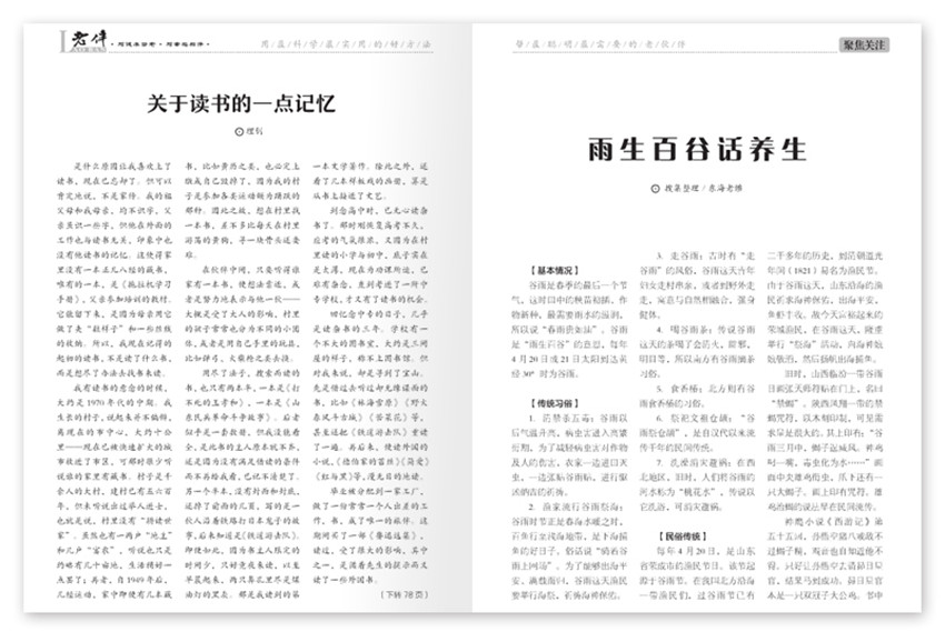 面向50岁以上知识分子读者群体,用知识、智慧、机敏的水平和眼光,去洞察、洞悉、洞穿平常生活中的涉老话题,用平实、平和、平缓的语言,来讲述感人的故事、深刻的道理、实用的知识、趣味的生活、广阔的视野、健康的情怀、和美的家庭、融洽的友情、史料的探究、才艺的展示、心情的倾诉。