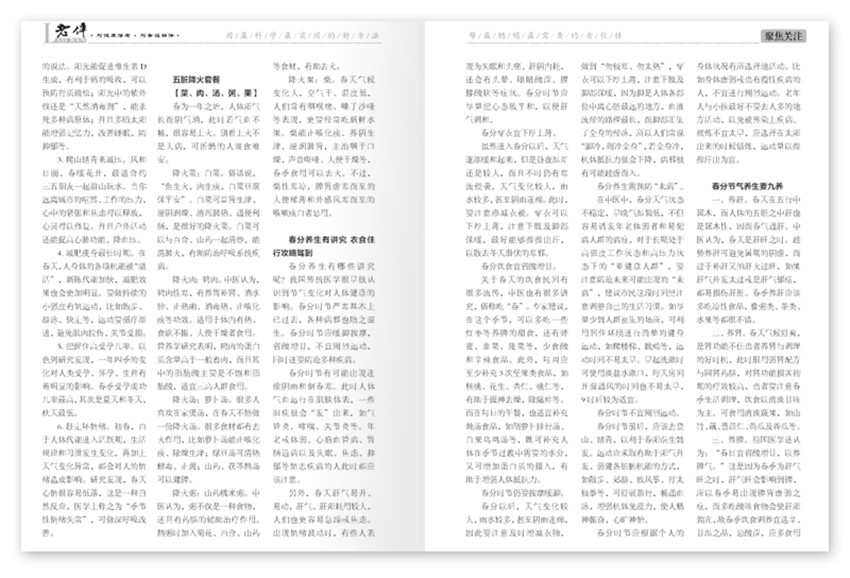 春分养生有讲究衣食住行攻略驾到,春分养生有哪些讲究呢?我国传统医学很早就认识到节气变化对人体健康的影响。春分时节严寒基本上已过去,各种病邪也随之滋生。春分时节应暖脚按摩,省酸增甘,不宜剧烈运动,同时还要防范多种疾病。春分时节有可能出现连续阴雨和倒春寒。此时人体气血运行在肌肤体表,一些旧疾就会“发”出来,如气管炎、哮喘、关节炎等。