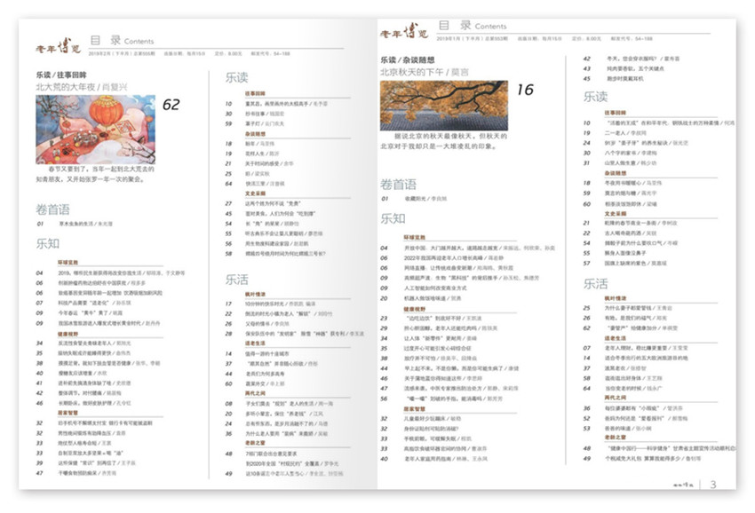 《老年博览》主要栏目:往事漫忆、杂谈随想、文史长廊、科学养生、快乐生活等。