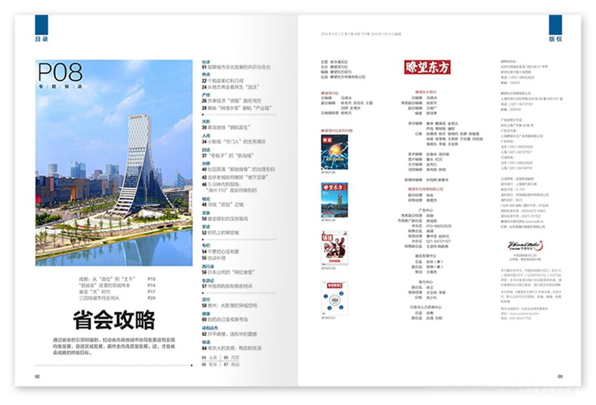 《瞭望东方周刊》,单期页数:80页,本刊创刊于:2003年,其纸张开本为:16开,本刊重在突出理论性和探索性,对促进时政新闻交流及发展,起着重要的指导作用。面向政府决策者、面向企业引航人、面向精英层,核心读者是800多位中央部委负责人;10万多名各省市机关团体领导;珠江三角洲经济区,长江三角洲经济区,京津唐经济区12万大中型企业中高层管理者;其他中心城市11万名高端人群。