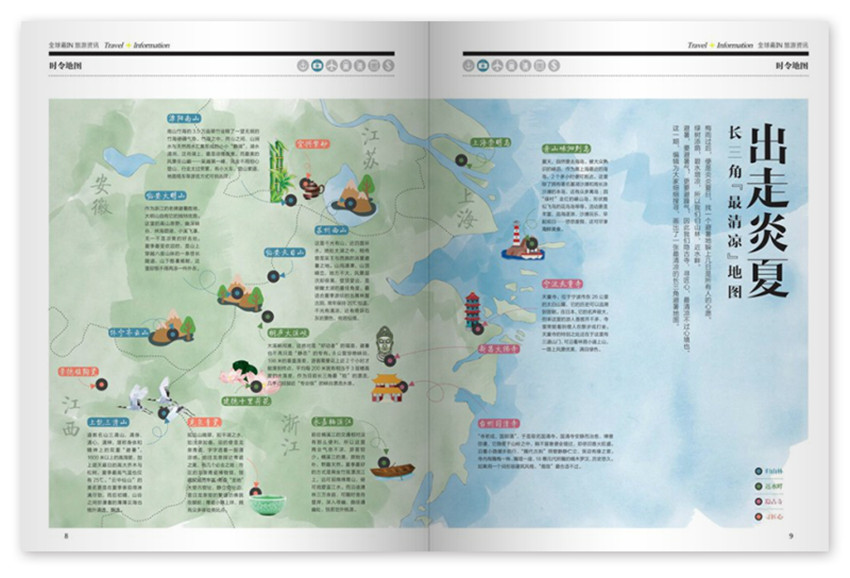 《旅游情报》主要栏目:周边游、酒店、小众游、本季新线路、我的导游、精明旅游等。