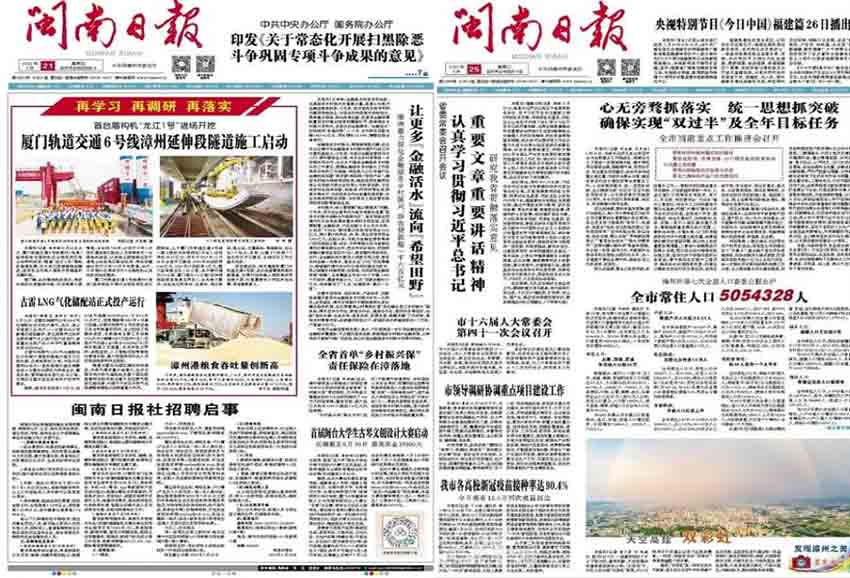 2. 关注民生:闽南地区是一个以农业、渔业和旅游业为主的地区,每天有大量的影响当地居民利益的新闻事件发生,如基础设施建设、环保、民生保障等。《闽南日报》关注民生问题,充分发挥舆论监督作用。