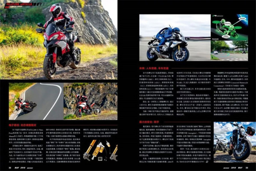 《摩托车》主要栏目:评车、维修、实例、配件、问与答、经营、学校、改装、俱乐部等。