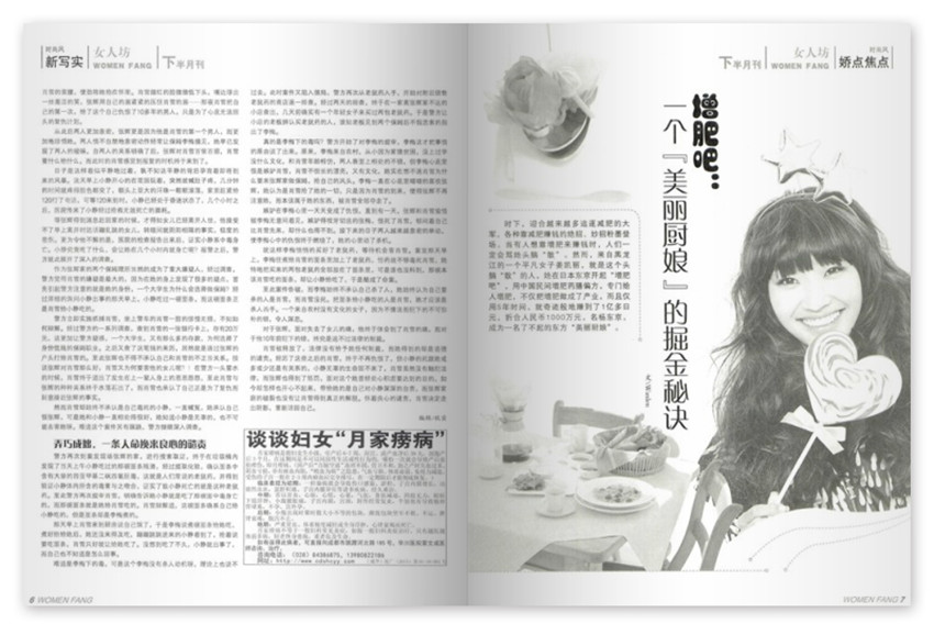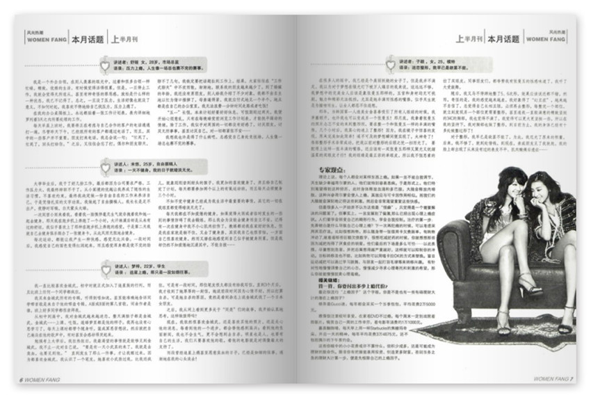 《女人坊》杂志多年来贵在不断适应市场,并多次调整版块、栏目、风格、版式、印刷,一步一个脚印,一年一个台阶,从只在国内发行到走向国际书刊市场。