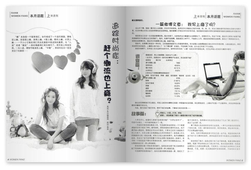 通过处在世纪之交的现代女性心灵路程的揭示和成长经历的记录,以及与她们所思所想所忧所喜的沟通和交融,描绘出了当今女性真切的生存状态、多维的生活方式和追求,以清新活泼的文风,犀利独到的目光,精致大方的装帧,水乳交融的文图吸引着人们,成为都市知识女性白领丽人的精神享受,成为年轻女孩及大学生的良师益友。