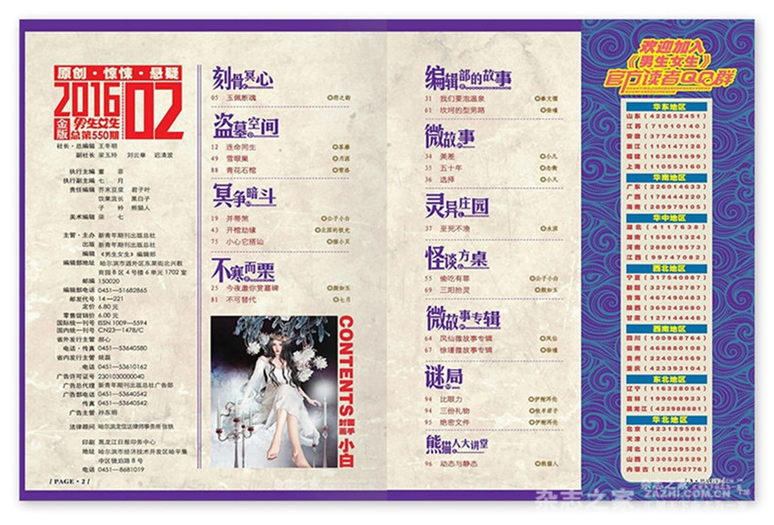以“恐怖小说+奇幻玄异”开辟校园阅读新鲜领域,兼顾卡通漫画、玩乐等校园休闲热力内容。金版的主要内容是以恐怖、奇幻为主,以中学生及其同龄人为目标读者。16开本,80页,全彩印刷。在中学生期刊市场中,得到读者的广泛认可,享有较高声誉。