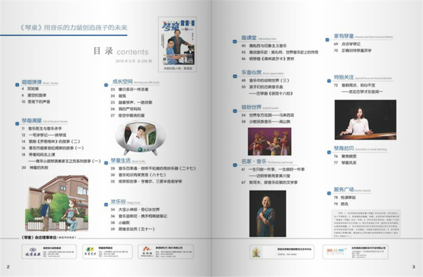 《琴童》主要栏目:名家.音乐、家有琴童、音乐课堂、教学论坛、卷首语、弹弹唱唱、琴趣满屋等。