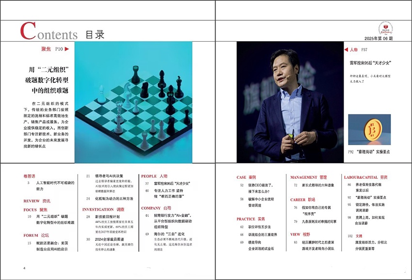 杂志以月刊形式发行,每期104页,采用四色印刷,内容涵盖人力资源全链条模块:从战略规划、工作分析、招聘测评,到培训开发、绩效考核、薪酬福利,再到劳资关系与职业发展,形成系统性解决方案。核心栏目包括“HR高层论坛”“标杆企业透视”“HR精英访谈”“经典案例点评”“实战技术应用”等,通过“问题+答案”模式,直击企业人力资源管理中的招聘效率低、人才流失率高、绩效激励失效等痛点,提供可落地的工具与方法。例如,2025年7月刊中,针对“试用期争议风险防控”专题,结合法律条款与真实案例,提炼出七大风险管控要点,为企业HR提供实操指南。