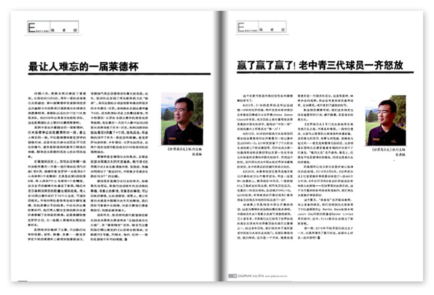 华东区一份高尔夫专业杂志,与英国GOLFPUNK杂志版权合作,挥别过往死气沉沉、一本正经的气息,以诙谐、幽默的风格,绽放在一片沉闷的高尔夫媒体中,几年来通过不懈的努力,得到了广大读者的关注。