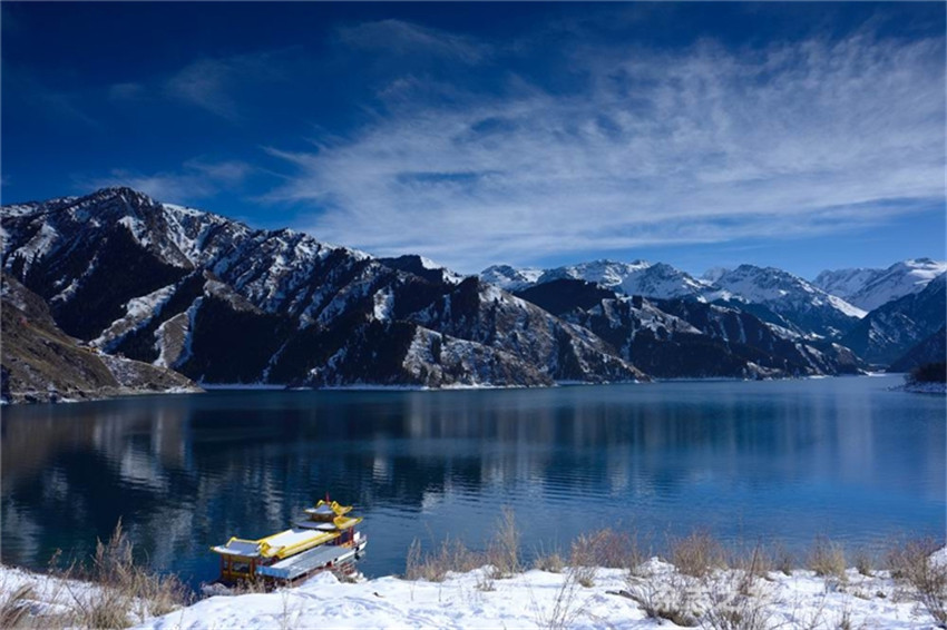 天山天池古称“瑶池”,地处新疆维吾尔自治区昌吉回族自治州阜康市境内,博格达峰北坡山腰,是以高山湖泊为中心的自然风景区,距乌鲁木齐市97公里。天山天池以完整的垂直自然景观带和雪山冰川、高山湖泊为主要特征,以远古瑶池西王母神话以及宗教和独特的民族民俗风情为文化内涵,是游览观光、科普考察、探险揽胜、休闲健身和民族风情游赏的去处。