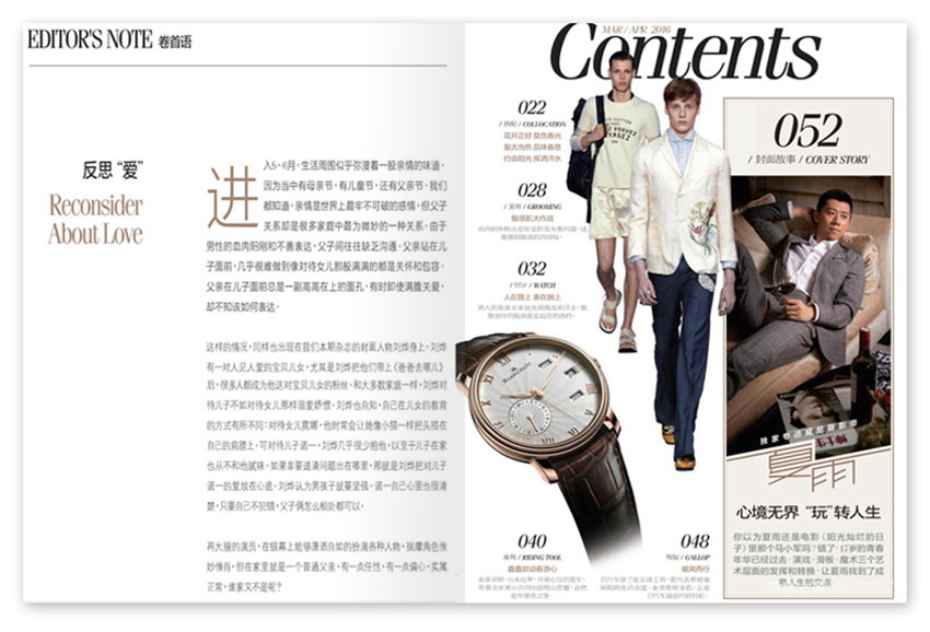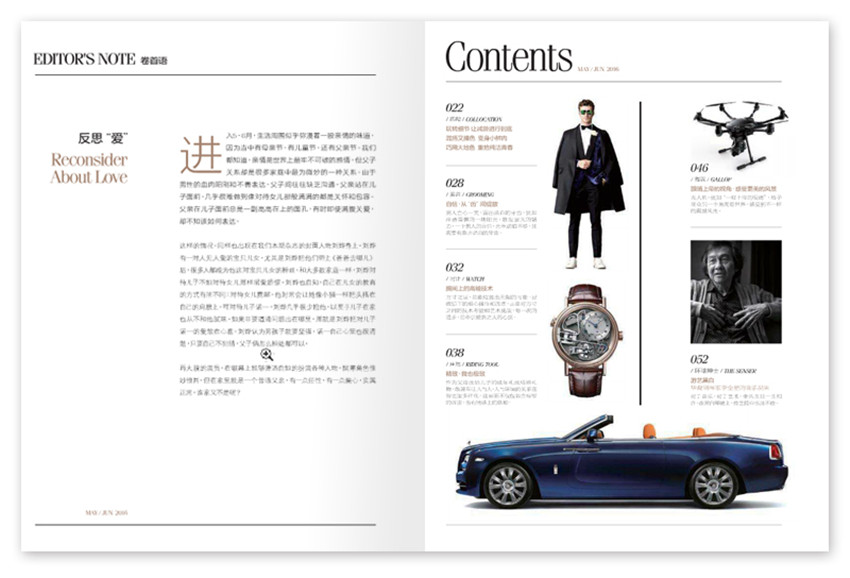 在这个物欲横流的时代,《绅士生活》不是单纯提倡“富而贵”的绅士生活形态的理念价值观,而是更应引领绅士接近东方上流社会的生活文化,与国际上流社会生活以及文化接轨,展现和诠释着“稳重大气、有智慧、懂得生活乐趣”的新东方绅士形象,秉持东西文化交融的审美趣味。