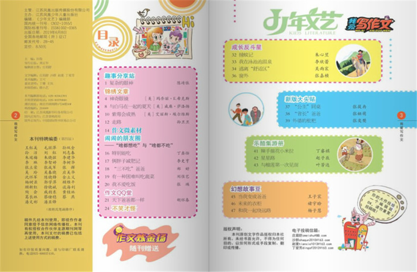 《少年文艺·我爱写作文》主要栏目:创新作文、锦绣文章、金牌作文、语文妙脆角等。
