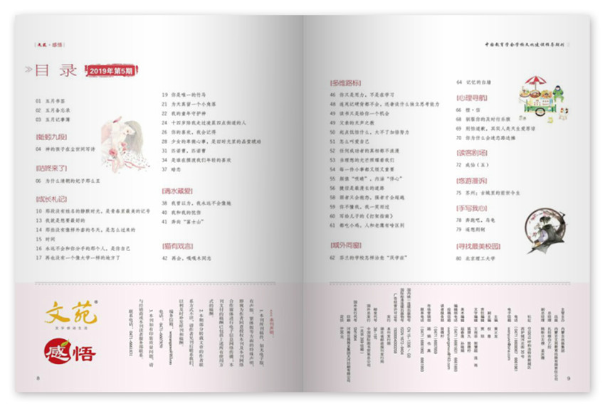 《文苑》杂志秉承“文字感动生活”的编辑理念,用精美的文字与读者同行,唯美、精彩、清新、智慧,发人深省,感人至深,充满生活情趣,宣扬理性哲思,追求简单中的精致与典雅,解读平凡中的意趣与智慧。