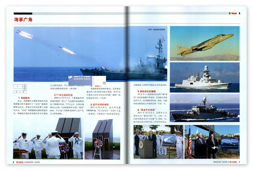 《现代舰船》杂志采用铜版纸全彩印刷,印刷精美,同时除了大量考实的数据和记载,杂志内丰富的舰船武器图片以及历史事件影像,对于爱好者来说都是很珍贵的收藏。在这里可以看到很多不为人知的事实和回忆。