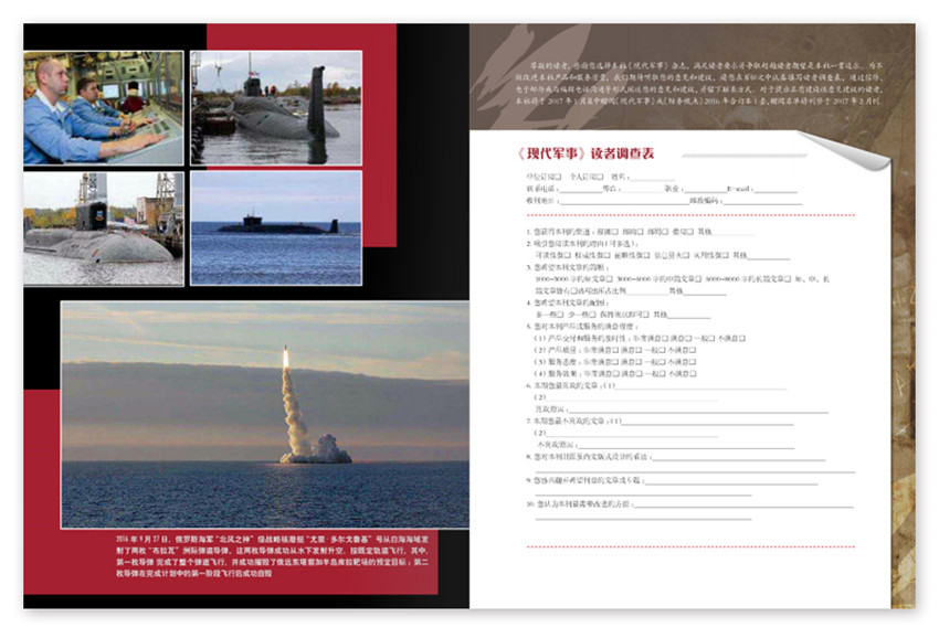 内容具有性、导向性、前瞻性、可读性,深受军事、政治、经济研究人员、部队专业人员和广大军事爱好者的喜爱,以其性、导向性、理论性、前瞻性、可读性,深受军事、政治、经济研究人员、军工贸人员、部队官兵以及广大军事爱好者的喜爱,已成为国内外有影响的、我军武器装备与军事技术领域的性军事期刊。