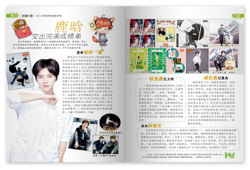 鹿晗交出成绩单,在15年的尾声,鹿萌萌交出了一份堪称的成绩单,新专辑、代言、综艺也都有很不错的成果。还因为工作太累而生病,这下子可吓坏了鹿饭们,纷纷献上满是爱意的留言。傻狍子只有一个,可千万别累坏了呀。变身国际“鹿”拥有超千万粉丝的当红小鲜肉鹿萌萌,在国内受到广告影视青睐也就算了,连国外的电影也来请他做大使啦(鹿饭们此时一定鸡冻沸了吧)。
