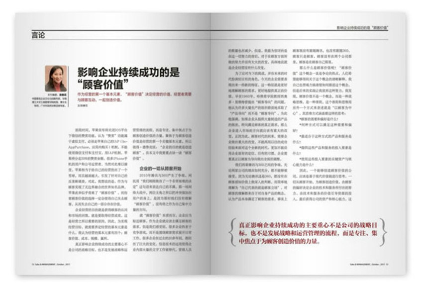 《销售与管理》主要栏目:锐观察、封面、管理新知、专题、高管商学院、企业战略等。