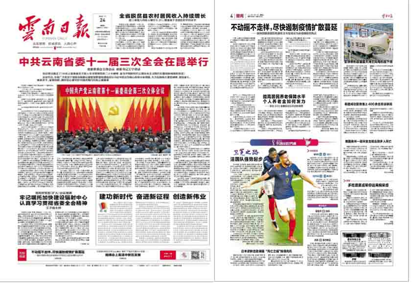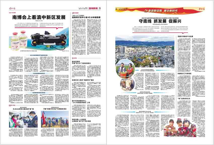 《云南日报》是中华人民共和国云南省的官方日报,是全省重点新闻单位之一,也是云南省委、省政府的机关刊物之一。其主要内容包括政治、经济、文化、教育、科技、环保、社会等方面的新闻报道和评论。头版一般会有云南省委书记和省长的署名文章,以及其他省领导的重要讲话和活动报道。该报会报道云南省范围内的重要会议、市委和各级政府的决策、政策解读等,同时也会报道党和政府的工作计划和进展情况。