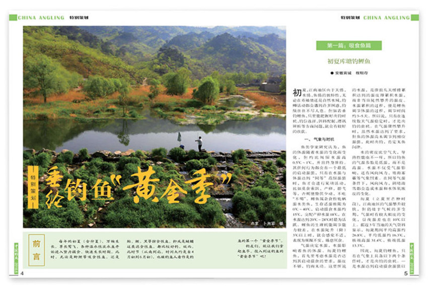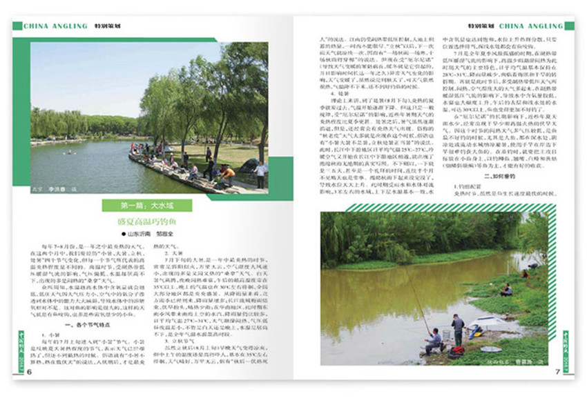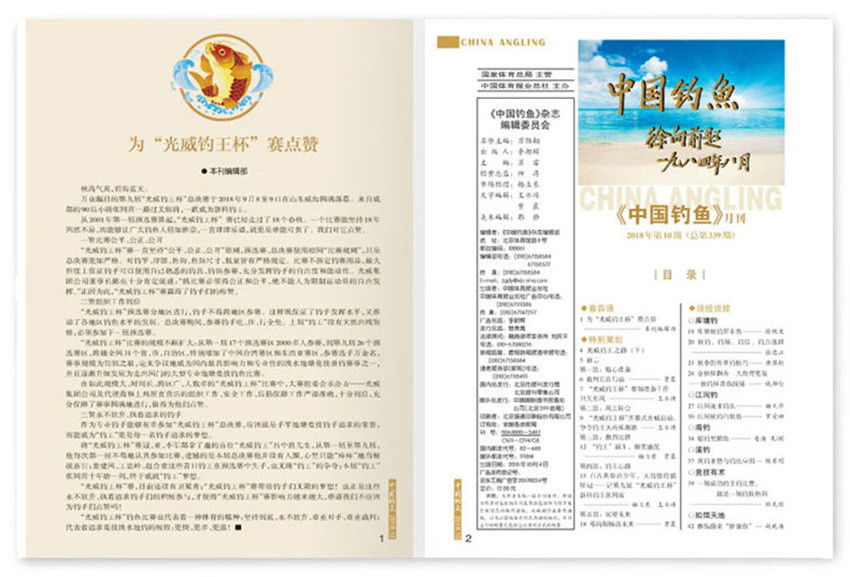 《中国钓鱼》主要栏目:协会工作、言论选登、文明垂钓、规则裁判、国内大赛、世界钓赛出访纪实等。