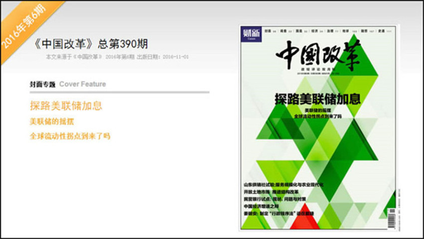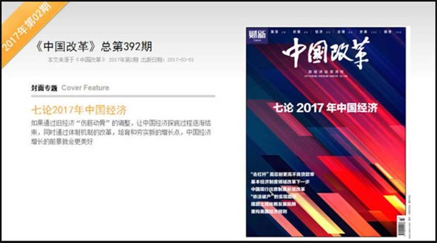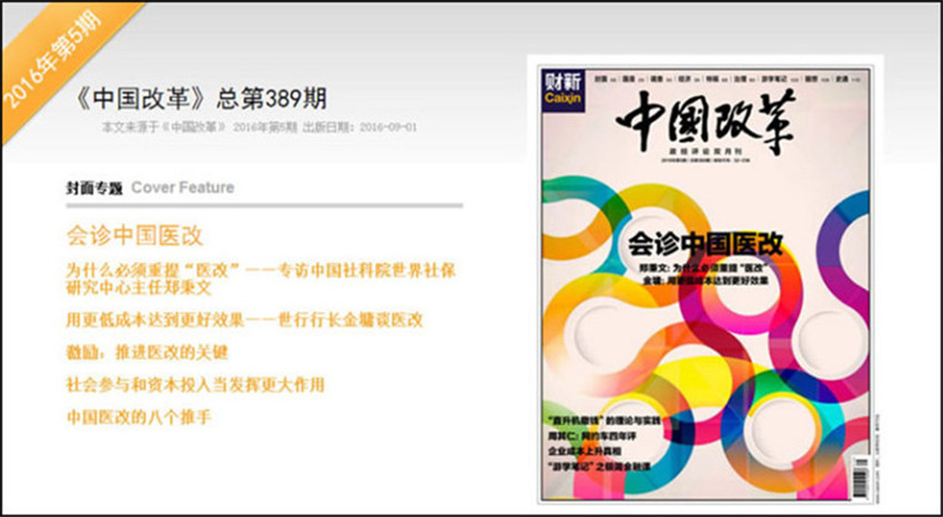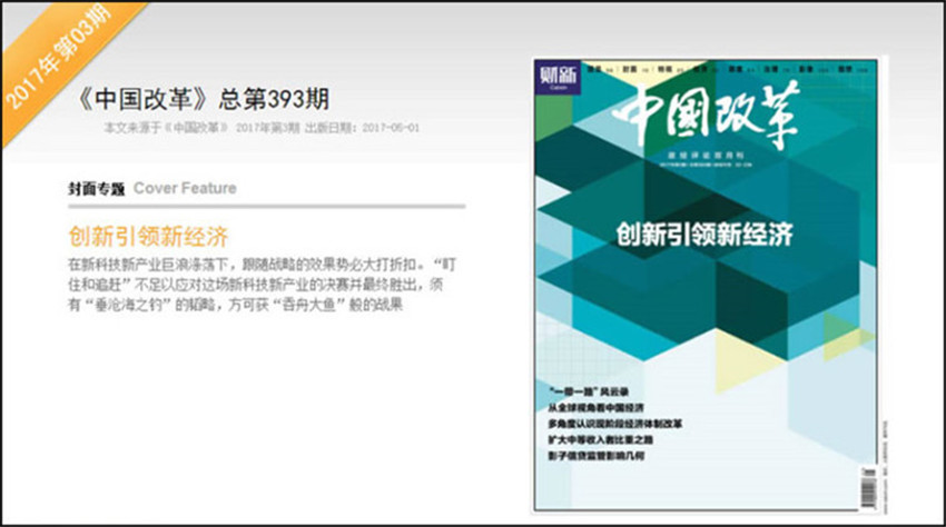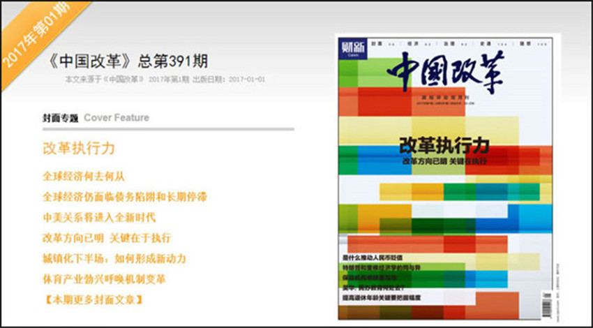 《中国改革》,单期页数:88页,本刊创刊于:1986年,其纸张开本为:16开,本刊重在突出理论性和探索性,对促进时政新闻交流及发展,起着重要的指导作用。选择国际、国内极具影响力性和战略性的选题,邀请具权威性的人士撰稿,提供权威及前瞻性观点,与全球政商学界领袖就前沿性和战略性话题进行对话。