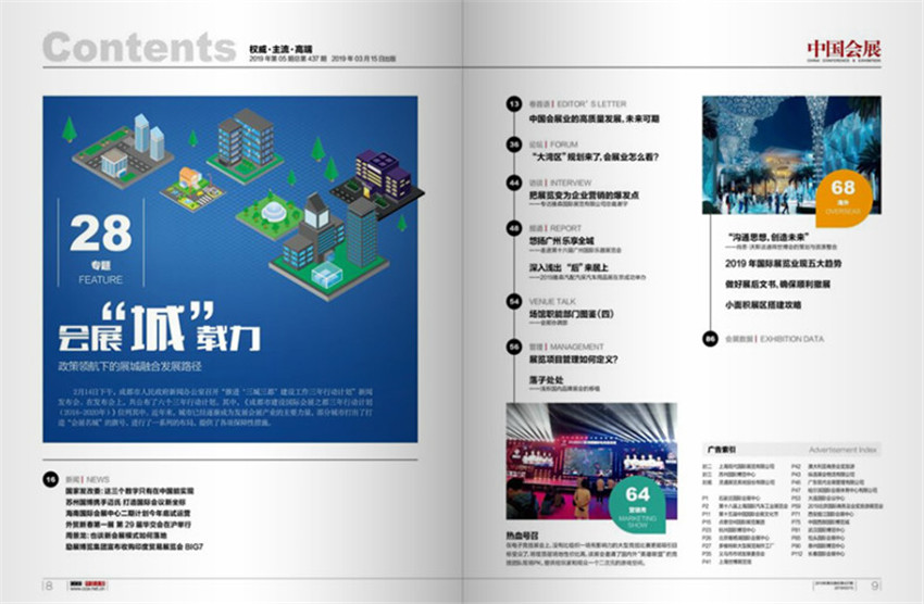 精彩的内容、专业的观点、精美的图片、高品位的审美情趣,随着读者的物质生活水准迅速提升,人们越来越注重精神层面的追求与生活品质的提升,《中国会展》顺应时代潮流的一个全方位整合出击。集趣味性、思想性和知识性于一体,是一本越来越有看点的杂志、一本越做越精彩的杂志、一本越来越受欢迎的杂志,在全国范围内具有较高的知名度和广泛的社会影响。