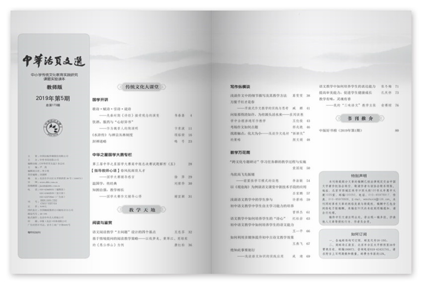 《中华活页文选》杂志传承创刊50多年来“文选”特色,以优美、正面、高品质的选文在中小学师生中具有良好口碑。中华国学板块仰仗中华书局国学实力,形成了文本准确、注译严谨、讲解浅易的传统。