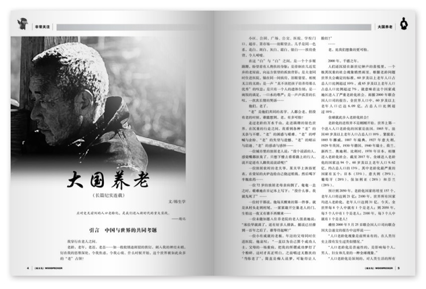 精彩的内容、专业的观点、精美的图片、高品位的审美情趣,随着读者的物质生活水准迅速提升,人们越来越注重精神层面的追求与生活品质的提升,《啄木鸟》顺应时代潮流的一个全方位整合出击。集趣味性、思想性和知识性于一体,是一本越来越有看点的杂志、一本越做越精彩的杂志、一本越来越受欢迎的杂志,在全国范围内具有较高的知名度和广泛的社会影响。