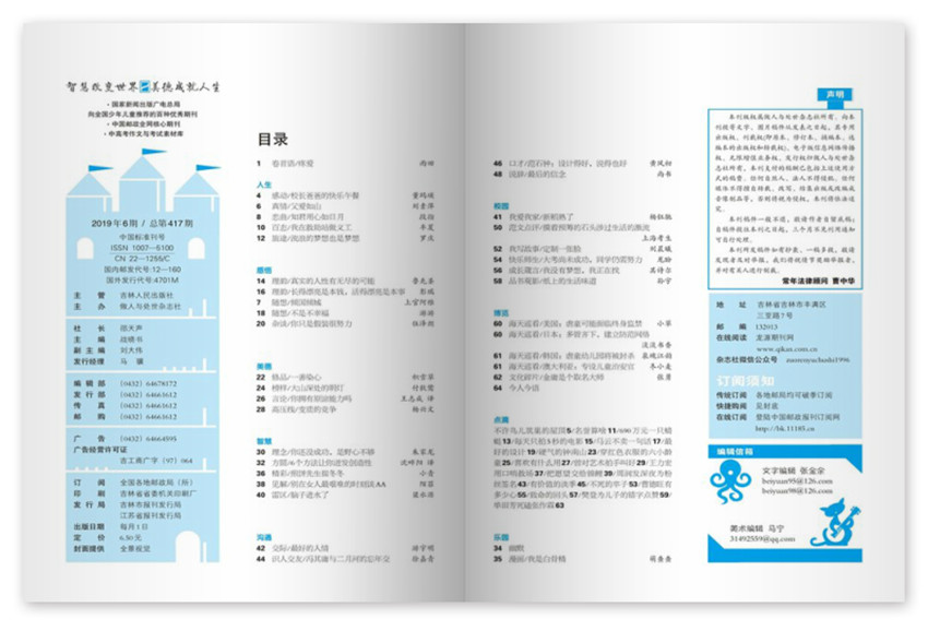 《做人与处世》杂志是中国期刊方阵中的优秀期刊,是献给所有孩子、所有父母的“美德智慧读本”,同时更是一本关心孩子成长、启迪智慧的杂志。