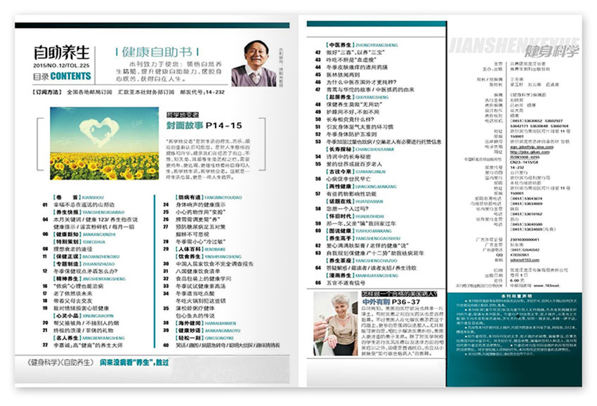 致力于帮助读者:领悟自然养生精华,提升健康自助能力,摆脱身心疾苦,获得自在人生,主要栏目:精神养生、饮食养生、起居养生、中医养生、健身养生、艺术养生等。强调内容的可读性和实用性,以深入浅出的“讲故事”的方式,从生理疾病到心理健康,从食疗到药疗,从修身养性到益寿揭秘等传播切实可行的养生之道。